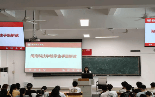 为加强学风建设,规范学生日常行为,维护正常的教育教学秩序,我院组织开展了2025级新生入学教育之校纪校规及学风教育,辅导员苏玲玲带领全体同学对《闽南科技学院学生手册》的基本条例进行了系统性的熟悉,通过引用身边具体实例,生动形象地为大家解读了学生考试守则及违纪处理等重要规定,让学生们尽早适应大学生活,自主学习、自我管理。